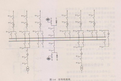 这种接线,每一元件通过一台断路器和两组隔离开关连接到两组母线上,两组母线间通过母线联络断路器连接,它克服了单母线接线在设备检修时需要停电的缺点.有较高的可靠性与灵活性,是较常用的一种接线方式.